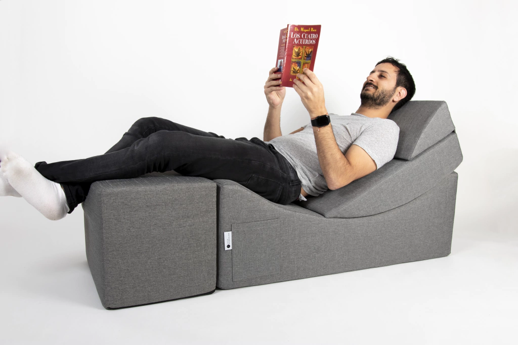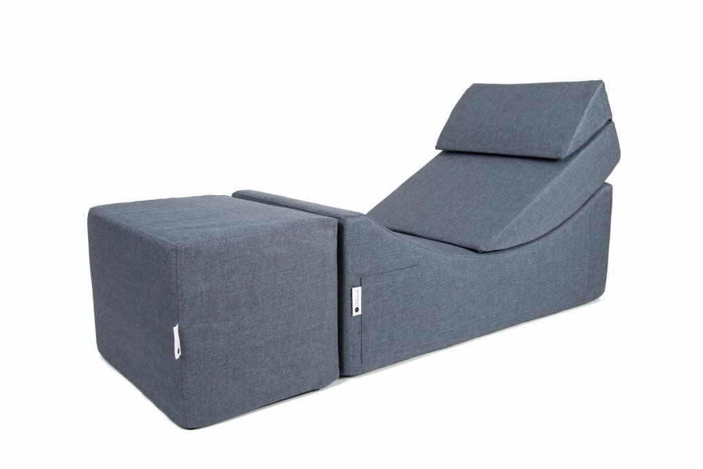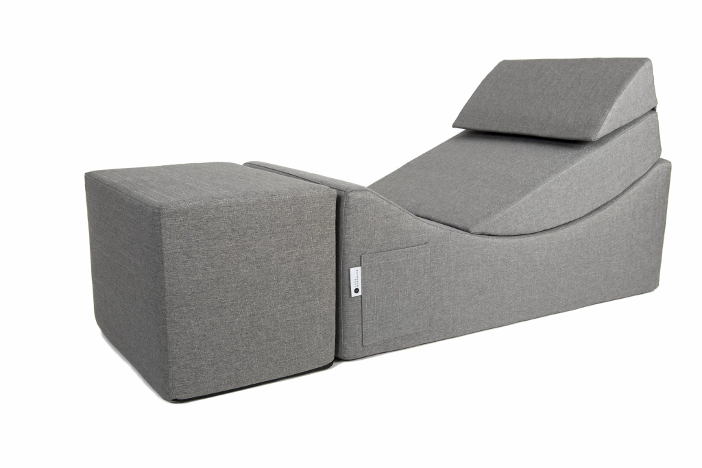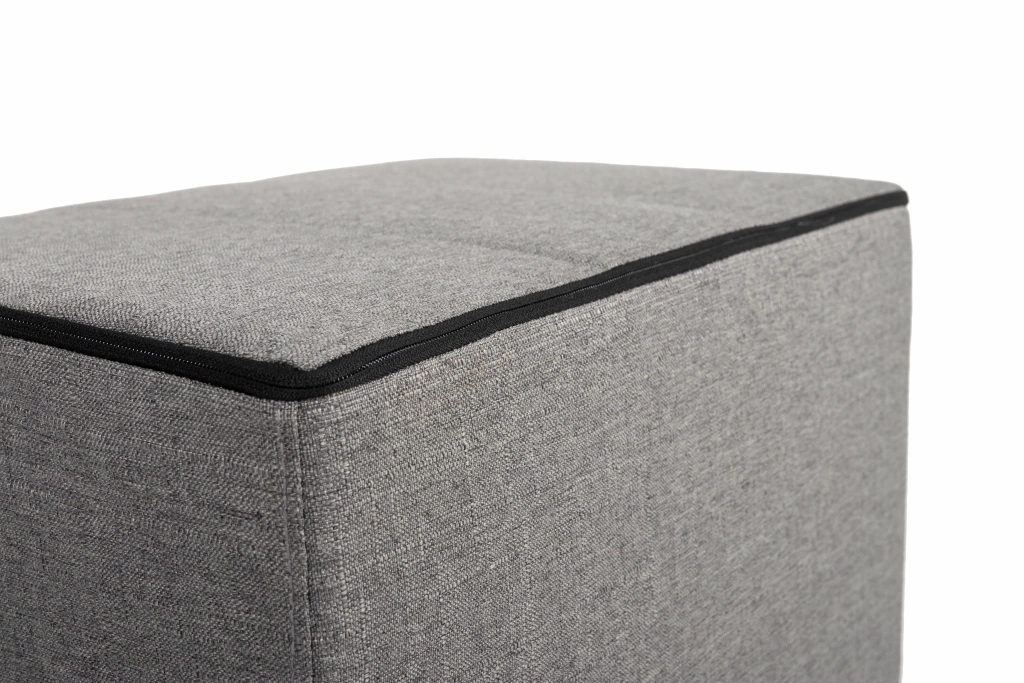 Viene en 2 diferentes colores: Gris Oscuro y Gris Claro, mismos tonos que el modelo Grulla Mayor para que puedas llevártelos en combo, tiene la misma profundidad y altura para darle continuidad visual de diseño y también tiene la versatilidad de un clásico puff para sentarse.
